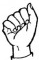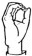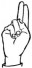 На ћирилици написано АНДРЕА МИЛОШИЧЕВИЋ састоји се из 17 слова [?]. Исписано ћириличном једноручном азбуком за глувонеме: